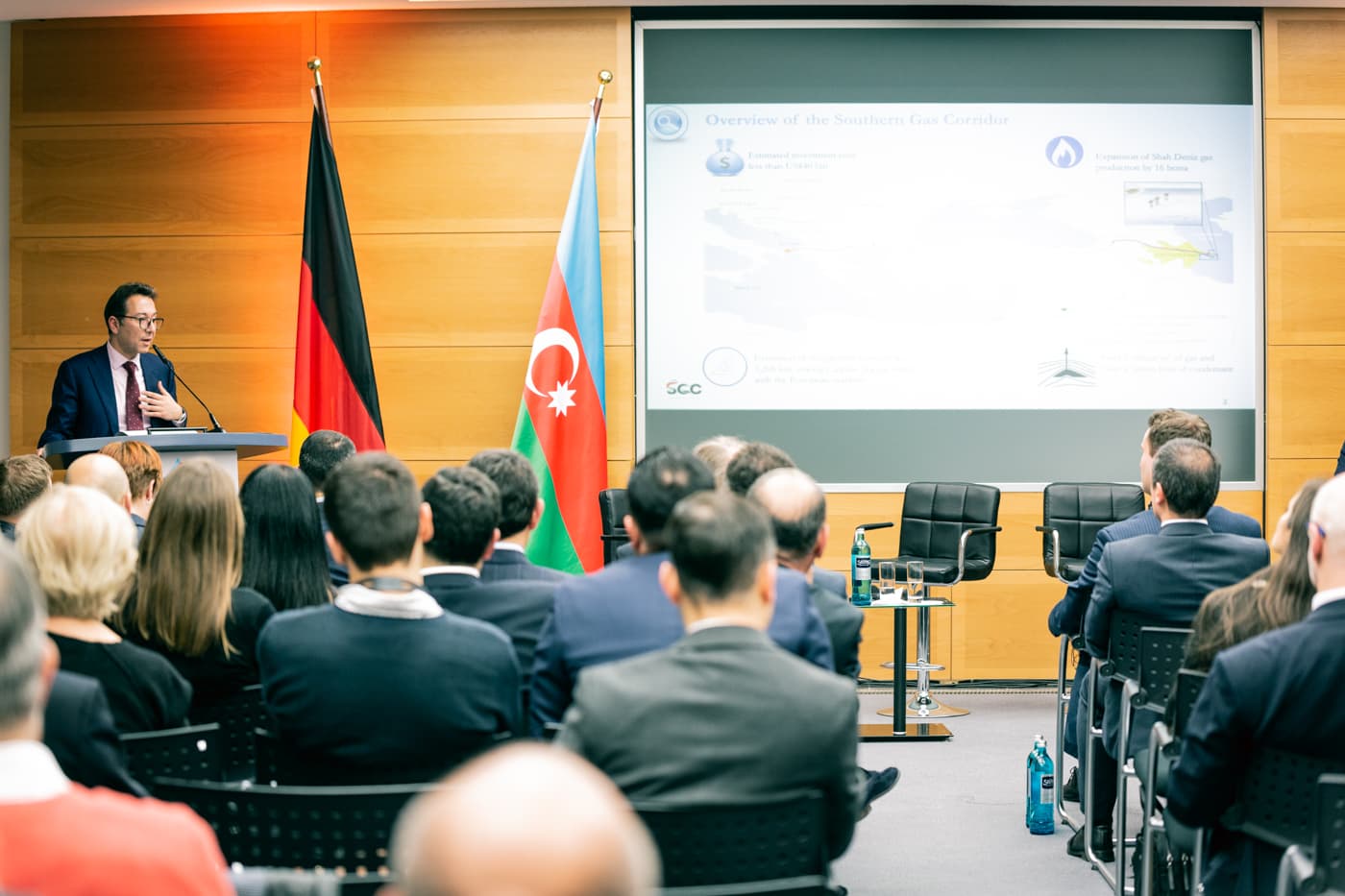 Am 28. November 2018 organisierten Mark Hauptmann, Mitglied des Deutschen Bundestages, zusammen mit S.E. Ramin Hasanov, Botschafter der Republik Aserbaidschan in der Bundesrepublik Deutschland, den ersten Deutsch-Aserbaidschanischen Wirtschaftsdialog in Berlin. Die Veranstaltung fand im NUMOV Konferenz-Zentrum (Mauerstr.13, 10117 Berlin) statt. SOCAR unterstützte die Veranstaltung mit anderen namhaften Partnern wie z.B. UNIPER, der Deutsch-Aserbaidschanischer Auslandshandelskammer, dem Ost-Ausschuss – Osteuropaverein der Deutschen Wirtschaft, dem Deutsch-Aserbaidschanische Forum usw. Die Veranstaltung ermöglichte den deutschen und aserbaidschanischen Unternehmen eine Dialogplattform, um neue Kooperationsmöglichkeiten zwischen zwei Ländern zu diskutieren, Geschäftsbeziehungen aufzubauen und um mit Politikern in Kontakt zu treten. Das Programm beinhaltete Vorträge und Podiumsdiskussionen mit Referenten aus den Bereichen Politik und Wirtschaft. Die Veranstaltung wurde von Hauptrednern aus Deutschland und Aserbaidschan auf Minister- und Staatssekretärebene eröffnet und am Abend mit einem informellen Networking-Buffet abgeschlossen. An der Veranstaltung haben seitens SOCAR Herr Afgan Isayev, Direktor des Südlichen Gaskorridors, und Herr Elmar Mamedov, Direktor der SOCAR Repräsentanz in Deutschland, teilgenommen.